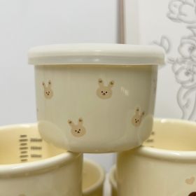 Children's Tableware Ceramic Bowl Fresh-keeping Sealing Band Scale (Option: Yellow Full Printed Rabbit)